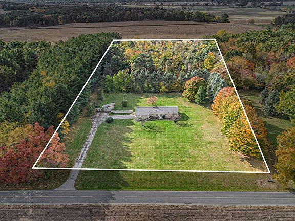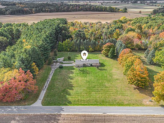 Discover the possibilities with this 3-bedroom, 1-bath ranch-style home offering country living at its best. The unique see through wood burning fireplace connects the living room and eat-in kitchen, creating a cozy and inviting space for gathering. The kitchen includes appliances that stay, making move-in simple. A full basement with its own fireplace provides even more living space, perfect for entertaining or relaxing. Outside, enjoy nearly 5 acres of open land ~ ideal for gardening, adding a pole barn or outbuildings, or simply enjoying the peace and privacy of the countryside. With plenty of room to roam, this property is ready for your vision. Seller prefers to sell as is.