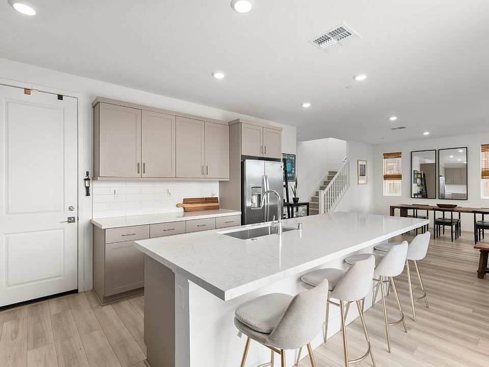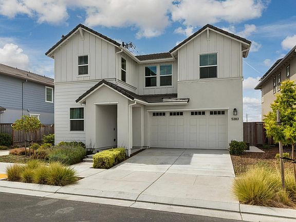 Discover lakeside living in the One Lake community of Fairfield, where convenience and recreation come together. This beautifully appointed 4-bedroom home sits in a prime location with no rear neighbors, offering both privacy and hillside views. Light-colored LVP flooring carries throughout the open floor plan, enhanced by abundant natural light. The spacious kitchen highlights a large center island with sink, breakfast bar seating, stainless steel appliances, gas range, microwave, dishwasher, and generous Quartz counters and ample storage space. A full bedroom and bathroom located downstairs provide the perfect setup for guests or multi-generational living. Upstairs, enjoy a versatile loft for added entertaining space, an oversized laundry room with storage, and a spacious primary suite featuring expansive windows, walk-in closet, dual sinks, and a spa-like shower with bench seating. The low-maintenance backyard includes artificial turf and a blank slate to make it your own. Just steps away, One Lake offers resort-style amenities: Journey Coffee, a 21-acre lake for kayaking and walks, Club Lounge, yoga and tai chi area, special event room, flex spaces, work areas, fire pits, barbecues, and scenic lake views. Ideally located near shopping, dining, schools, and Travis AFB.