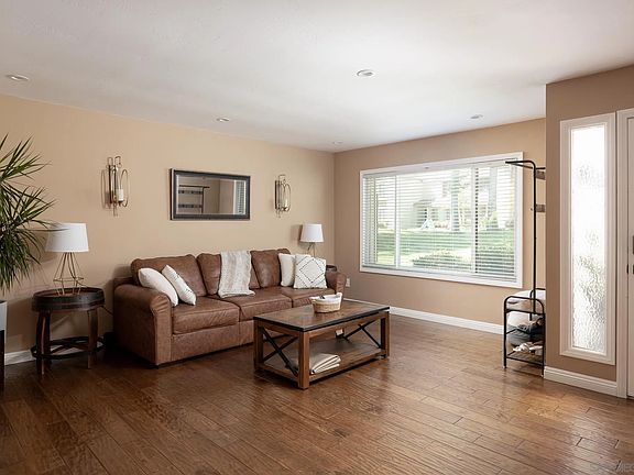 This move in ready Townhouse is located in the Tierrasanta community is located a top of the hill near Shepherd's Canyon. This home includes engineered wood flooring, dual pane windows, central heat and air conditioning, private upstairs balcony and downstairs patio, attached 2 car garage and boast a kitchen with antique white cabinets, granite counters and Viking appliances. The community amenities also include pools, spa recreational room (kitchen and pool tables) and tennis courts. VA approved complex!