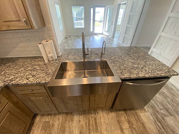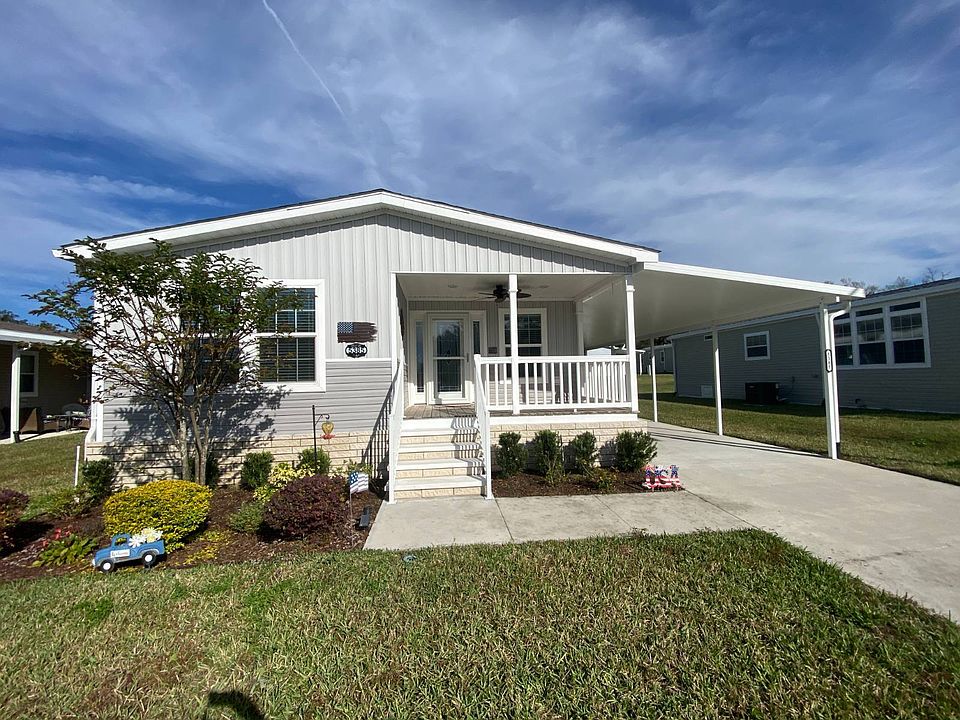 Better Than New At A Much Better Price - 2022 w/ Granite Countertops - Freshly Painted Interior. This is a beautiful 2/2 with bonus office/den room neatly situated behind sliding barn doors. Basic model upgraded with granite countertops, whole house water filter as well as reverse osmosis system under kitchen sink for extra pure drinking water. Surge protector added to main panel box. Storm doors added to both entryways. Leaded glass front entry, and blinds-in-window added to side entry. Island kitchen has a new fridge in 2024 that matches all the other stainless steel appliances. Home has been lovingly maintained and it shows. Nice open floorplan. Master bedroom has huge walk in closet as well as beautiful en suite bathroom. Tray ceilings with recessed LED lights. This is a great home and is a great value compared to the new homes available on the same street. Water system is under warranty until 2030. Regular pest control has been done, as well as regular HVAC maintenance performed. There is also an additional shed for extra storage. Clover Leaf Farms is a great community, has 3 pools, pickleball courts, 2 clubhouses, and lots of other amenities and activities. Lot rent is only 847 and includes trash pick twice a week, recycling, water & sewer, as well as lawn care. This is a good one. Owner will consider selling furnishings as well. Call Today!