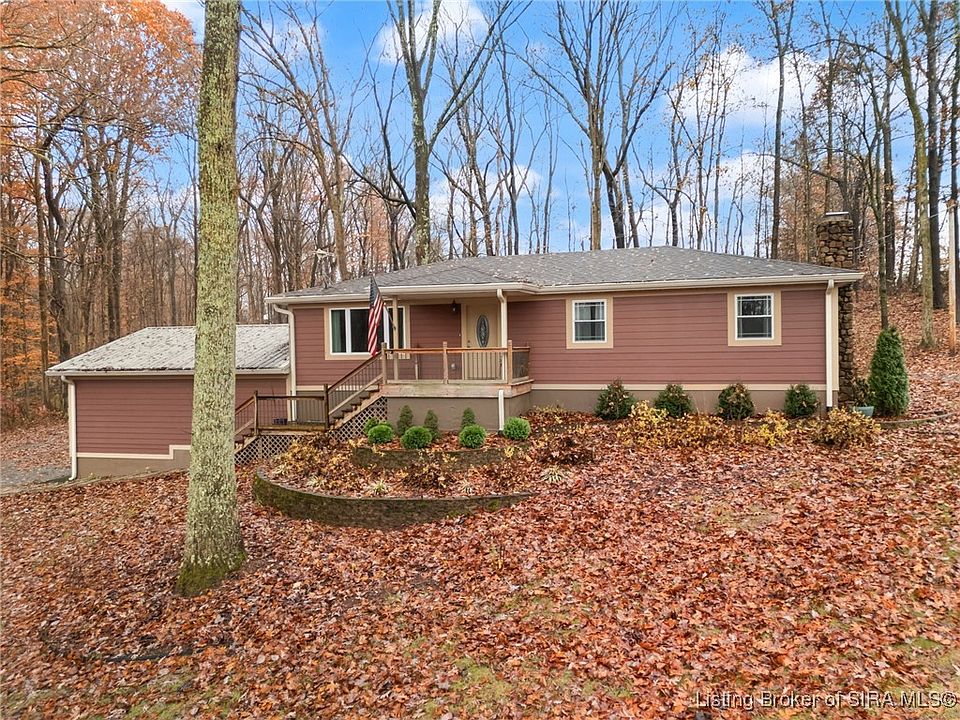 Get ready to be impressed! This updated 2,201sqft 2bed/2bath property (with a finished basement!) offers an open floor plan and sits on a full 1-acre lot in the Lanesville Community Schools district! The kitchen features a breakfast bar and plenty of cabinet space, opening right into a large dining area that's perfect for everyday meals or gatherings. The living room includes a large window that fills the space with natural light and gives a great view of the outdoors! Talk about a perfect staycation or maybe an Airbnb?! The large primary bedroom has two separate closets, with a full bath located close by. The second bedroom is also generously sized and has access to another full bathroom. The basement adds more living space with a family room, laundry area, and extra storage. The attached garage offers additional room and the wraparound driveway provides tons of parking options. You'll love spending time in the backyard setup. A tiered deck extends off the back of the house and includes its own grilling area. A newer gazebo adds a great spot to relax and there's tons of potential to spruce up the landscaping this spring/summer! There's also a custom-built storage shed from 2023. Recent upgrades include new windows and interior/exterior doors (2018), a new roof with gutters and downspouts (2022), and replaced deck boards along with a new 12×12 outdoor gazebo added in 2024. This home has been thoughtfully updated and is truly move-in ready