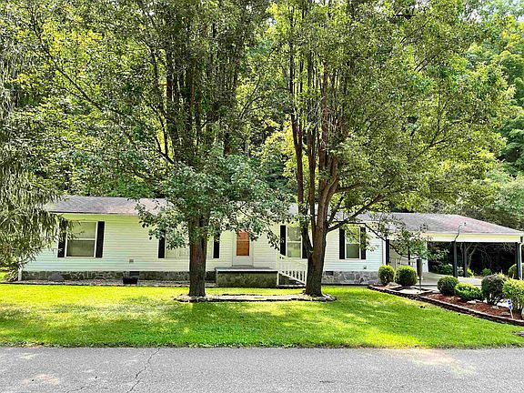 Welcome home to this pristine 3 bedroom, 2 full bathroom home situated on nearly 1/2 acre of level land. Walk in to a bright and spacious living room, an open concept dining/kitchen area and a large primary bedroom with an ensuite and a walk-in closet. The yard is landscaped beautifully with a fenced-in garden area. There is a large outbuilding, one side having electric, that is perfect for storing lawn mowers and related equipment. A second outbuilding is located off the back deck that has electricity and access to gas. There is plenty of covered parking and the home is handicap accessible. Located just minutes from I-64 and Beech Fork State Park. Preliminary flood certificate does not indicate that flood insurance is required-buyer to verify.