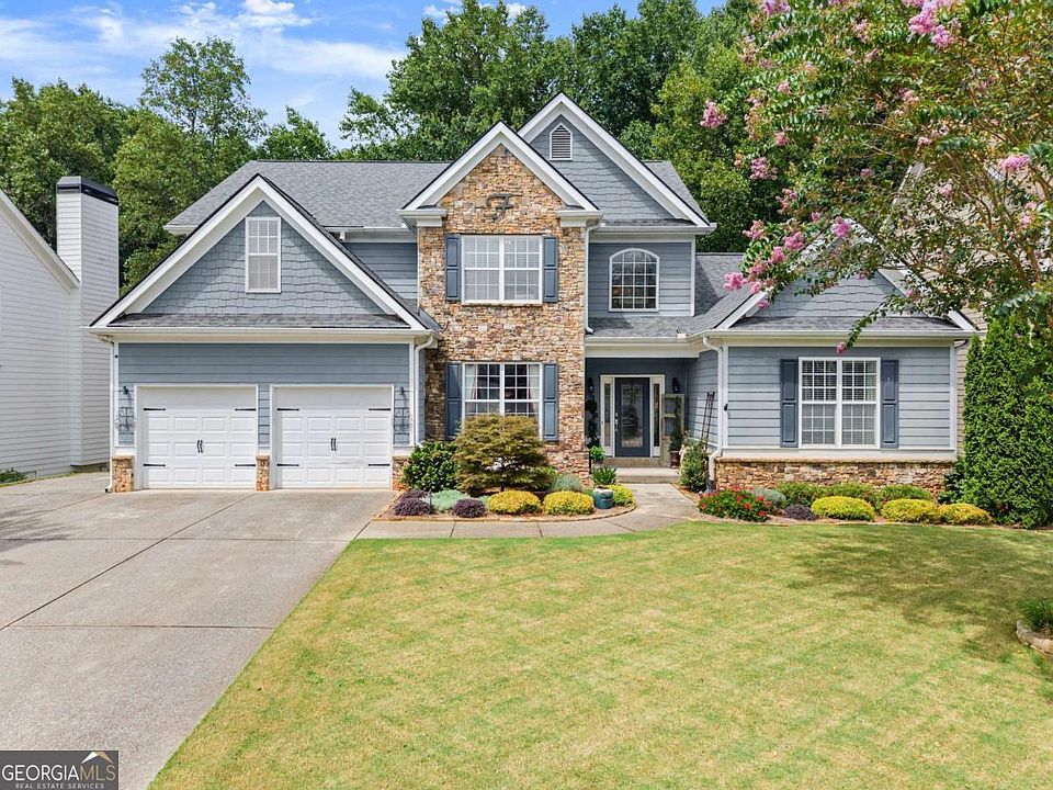 Welcome to your dream home, where timeless design and resort-inspired living converge in one of Forsyth County's most coveted communities. Set within Hampton Golf Village-home to championship golf, tennis, and swim amenities-this residence isn't just a home, it's a sanctuary where elegance meets everyday ease. From the moment you step inside, sunlight pours through soaring two-story living spaces, and a dramatic double-sided fireplace grounds the open flow with warmth and sophistication. A vaulted office offers quiet inspiration, while the open kitchen, keeping room, breakfast nook, and formal dining room make this home a natural stage for grand gatherings and holiday traditions. The main-level primary suite feels like a private retreat, framed by a deep tray ceiling, custom dual closets, and a newly refreshed bathroom. Upstairs features three gracious bedrooms and two full bathrooms, all with tremendous storage and walk-in closets. The rare, fully finished basement extends the possibilities with a true in-law suite, complete with a full kitchen, two bedrooms, a workshop space, and storage galore-perfect for multigenerational living, long-term guests, or simply reimagining your lifestyle with flexibility. Outdoors, a peaceful backyard oasis awaits. Professionally landscaped gardens, subtle yet luxurious low-voltage lighting, and the soothing presence of a koi pond create a retreat that transforms with the setting sun. Here, twilight becomes a private show, and evenings with family and friends feel like a getaway without leaving home. All of this is enhanced by Forsyth County's award-winning schools, vibrant community, and proximity to Lake Lanier, GA wine country, and Atlanta-bringing nature, luxury, and connection into your daily rhythm. Don't miss the Forsyth County Library within walking distance to the house! This is more than a residence; it is a canvas for celebrations, serenity, and a life well lived.