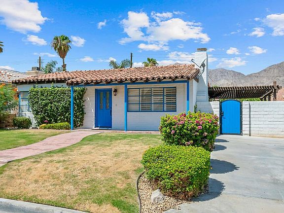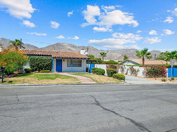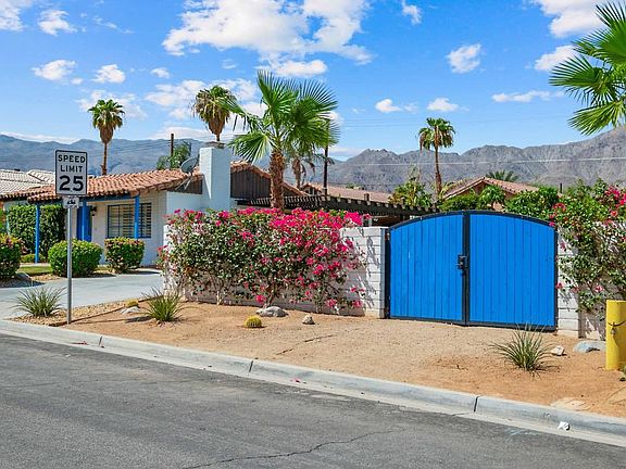 Nestled amongst the Santa Rosa Mountains, this 1948 historic casita offers breathtaking panoramic views. This home has been thoughtfully remodeled to modernize while keeping the integrity of the original design. As you step through the front door, the living room welcome's you with the original wood burning fireplace and gorgeous windows that showcase the the Santa Rosa Mountains. The kitchen has been updated with new flooring, quartz countertops, cabinets, stainless steel appliances and a large window that overlooks the backyard and pool. The family room offers a cozy entertaining space with an abundance of natural light, wood beams, and backyard views. Both bathrooms have been tastefully remodeled and the home has new tile flooring throughout. Other recent updates include private laundry area, custom motorized window treatment in the family room, new block wall in the backyard and an enclosed outdoor structure that is equipped with a mini-split AC system and french doors leading out to the pool! This beautiful home sits on over 10,000 sq.ft with ample room to enjoy outdoor living or add an adu or casita! Enjoy the new 40 ft long sparkling saltwater pool and take in all the breathtaking mountain views! Don't miss out on this rare opportunity to own an historic casita in La Quinta Cove! Home is located in close proximity to nearby hiking trails and Old Town La Quinta.
