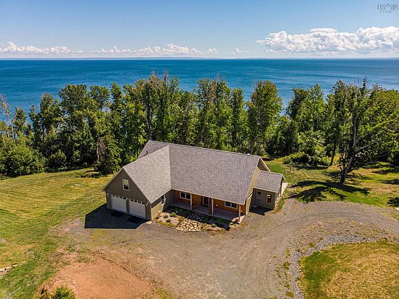 Oceanfront property in the beautiful community of Cape George (12.5 acres with 560 feet along the shoreline of St. George's Bay) partially wooded with privacy and a 1 km walking trail around the property. This well constructed home is less than 10 years old with a rancher style floor plan on concrete slab with in-floor heat. Some 15' ceilings - windows facing the ocean - built-in appliances - whole house backup generator - economical to heat - floor plan includes a spacious entry area leading to a great room that has galley kitchen with pantry closet, large laundry area and utility space, dining area, living room - primary bedroom with walk-in closet, a large ensuite - primary bedroom leads to deck area which stretches across oceanside of the house - two additional bedrooms, full bathroom and a cozy sunroom and a loft for additional living space or extra bedroom - the flooring is polished cement -lots of space for vegetable gardens, attached 2 car garage, an amazing garden shed - lots to see at this special property!!