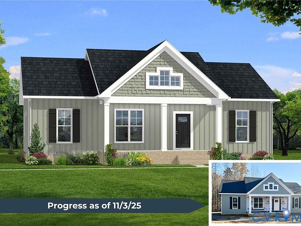 This beautifully designed 3 BEDROOM 2- BATH home is set to be completed in December 2025, offering modern comforts in a serene, spacious environment. The OPEN FLOOR PLAN combines the kitchen, dining, & living areas into a spacious GREAT ROOM with a CATHEDRAL CEILING, perfect for gathering. The KITCHEN features GRANITE counters, MERILLAT CABINETS, a central ISLAND & a PANTRY. LVP FLOORING runs throughout the main living spaces. Comfortable BEDROOMS :Retreat to one of the three cozy bedrooms, each adorned carpeting for added comfort. These spaces offer tranquility and privacy, ideal for restful nights. Stylish BATHROOMS: The two well-appointed bathrooms feature modern fixtures and finishes. Durable LVP Flooring: Enjoy the beauty of luxury vinyl plank flooring throughout the main living areas, offering durability and easy maintenance, perfect for today’s active lifestyle