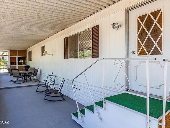 This charming home is move-in ready and fully furnished--including a golf cart! Thoughtfully equipped for full-time living, it's also a great option for seasonal use or rental income. Renovations in 2019 updated both bathrooms and most of the flooring, giving the home a fresh, comfortable feel. The back entrance laundry room provides extra space and can easily serve as a 3rd bedroom or hobby room. Set on an arroyo lot with mature citrus trees, a shady pine, and tall saguaros, the outdoor setting offers classic Arizona beauty right at your doorstep. Located in Tucson Estates 55+ Community, you'll enjoy all the benefits of ownership that include free golf, tennis, three pools, spa, exercise room, and more. Best of all you own the land. Just 15 minutes from downtown Tucson.
