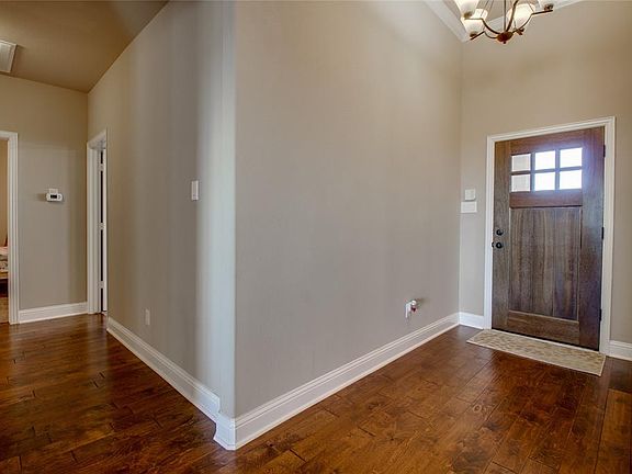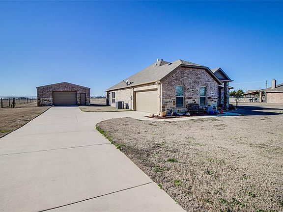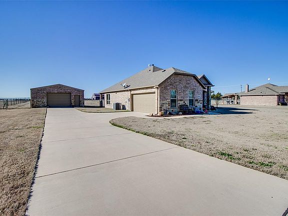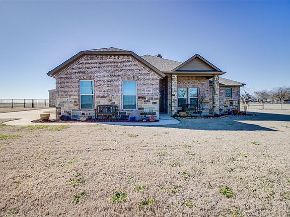 This gorgeous one story home is finished out with 24x12 ceramic tile in all wet areas, wood floors in living, entry and hallways and an open floorplan. The kitchen has granite countertops, lots of cabinets, stainless steel GE appliances with a walk in pantry. The family room has a stone floor to ceiling wood burning fireplace. The spacious master suite has a jetted garden tub, dual sink granite vanity, separate tile shower and walk in closet. The 3 secondary bedrooms are split with two walk in closets and a full size bath with dual sink granite vanity and tile shower tub combo. 25x25 brick workshop with electricity and workbench. Pipe fenced and front and back covered patios are an added bonus!