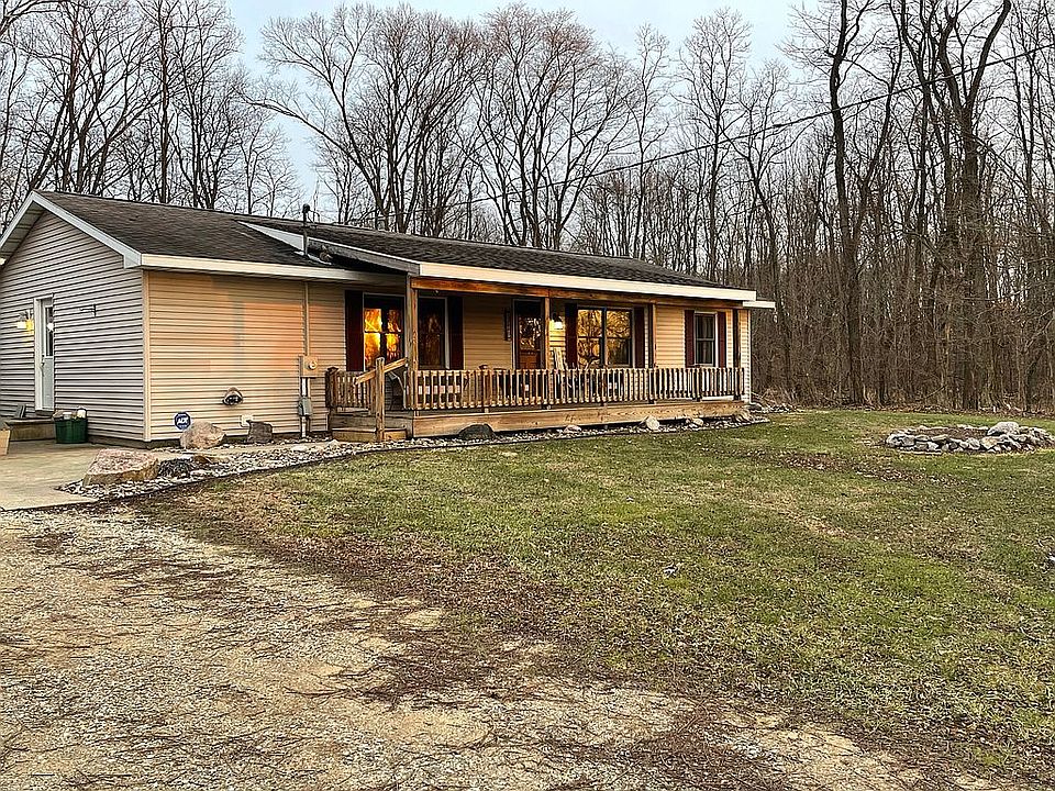 This one story ranch home sits on a beautiful country lot with river frontage and a wooded setting. Detached is a two car garage with extra space for storage or workspace. A wooden deck sits off the back of the home overlooking the large backyard and woods with a path to a river. A covered porch in the front overlooks the large front yard. This charming three bed, two bath home is a great for a family looking for a private space to call their own. This home sits just off of M-216 and not too far from US 131 for a quick commute into Three Rivers or the Portage/Kalamazoo area.