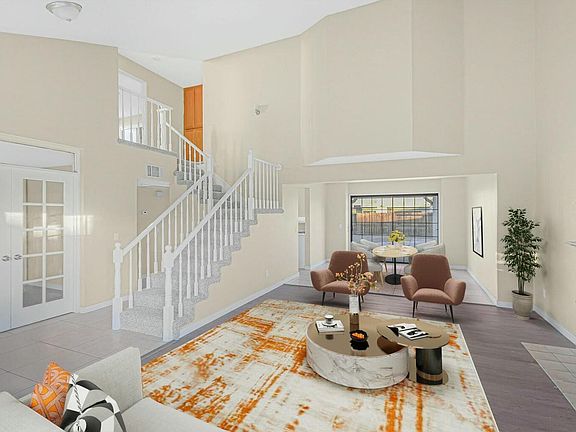This fully renovated home has been updated from top to bottom, featuring high ceilings, brand new interior and exterior paint, and new plank flooring throughout the downstairs area. Upstairs, you'll find fresh carpet in all the bedrooms, including a large and spacious master bedroom. The master features high ceilings, dual closets, his-and-her sinks, and a separate tub and shower. The updated kitchen is a chef's dream, boasting new countertops and brand new stainless steel appliances. Each of the bathrooms has been updated with new flooring, a new toilet, and modern fixtures, enhancing both style and comfort. The kitchen and living room both feature large custom floor tiles, adding a touch of elegance to these spaces. This home also includes a desirable downstairs bedroom and bathroom, two spacious living areas, a formal dining area, and a convenient downstairs laundry room. Outside, the front yard features brand new grass, while the backyard offers a covered patio overlooking the entire area. Additionally, there is an extra concrete area in the backyard, perfect for a spa or small seating area. Located in a great neighborhood, this home is close to schools, shopping, parks, and restaurants.