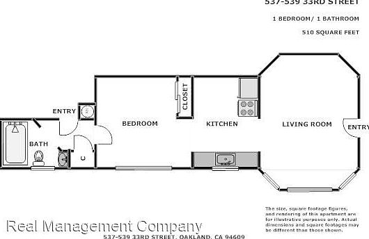 This 510 square foot apartment home has 1 bedrooms and 1.0 bathrooms. This home is located at 539 33rd St APT 4, Oakland, CA 94609.