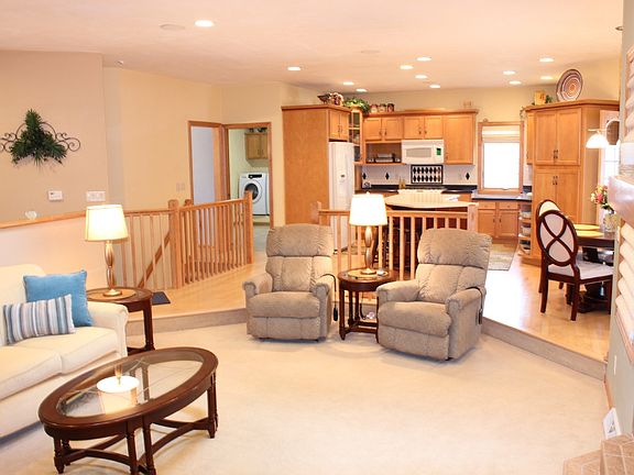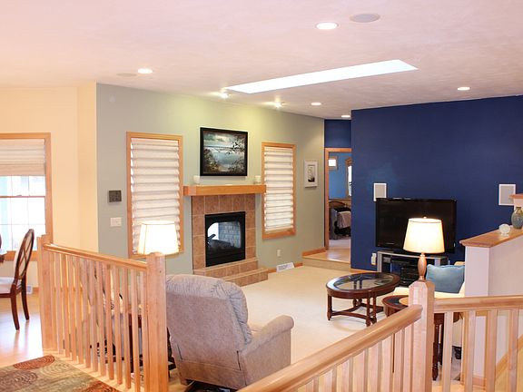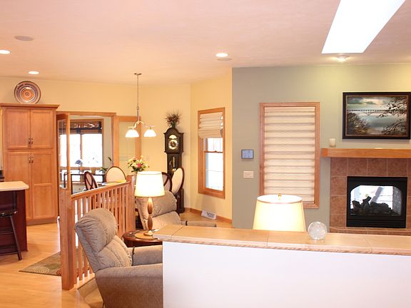 Spectacular custom built open concept ranch welcomes you with gorgeous hard wood maple floors throughout foyer, hall, kitchen, and laundry. Youll be very impressed with the fabulous open Living Room with a skylight and inviting 2-way indoor/outdoor fireplace, opening to the informal dining area. The extraordinary kitchen with a very large center island has a multitude of maple cabinets, exceptional counter space, and a tiled backsplash. Comfortable 4 seasons room with French doors, pass thru to kitchen and covered backyard access. There is an oversized laundry/mud room with large counter space, cabinets, built-in ironing board, locker area, and sink. There is a formal dining room, 2 good-sized bedrooms and a full bath off the hallway. The secluded master suite off of the Living Room features a tray ceiling and walk-in his & hers closet areas. Access to the patio & 2 way gas fireplace outdoors. Luxurious master bath with raised dual vanity area and walk in glass block tiled shower with custom rain shower heads. The lower level offers 2 Egress windows, is stubbed for a future bath, has high ceiling height and has stairs leading to the insulated, heated 3 car attached garage. All of this on a beautifully landscaped lot located in the heart of the Fox Valley.