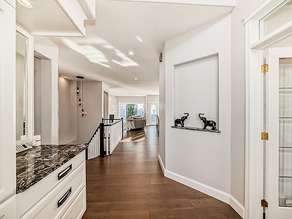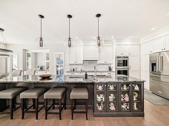 RARE RENOVATED CUL-DE-SAC BUNGALOW IN DONSDALE Tucked in a quiet, private pocket of the Properties of Donsdale, this beautifully updated 1,723 sqft bungalow offers 2+2 bedrooms, 3 full baths, and sunny south-facing backyard. Open main floor with soaring ceilings, large windows, and natural light throughout. The living room with gas fireplace flows to a bright, updated kitchen with timeless white cabinets, extra length island, high end stainless steel appliances, double pantry with drawers, plus a built-in dining table. The primary bedroom has two walk-in closets, updated 5pc ensuite with heated tile floor and multi-head shower. The main floor also features a second bedroom, full bath and laundry with custom cabinets. The fully finished lower level has 9’ ceilings, a spacious family/media area, two large bedrooms, a 3-piece bath and big storage area. The large backyard enjoys all-day sun, large deck, and hot tub. Located steps to the river valley trail system, nearby parks, and shopping. Welcome home.