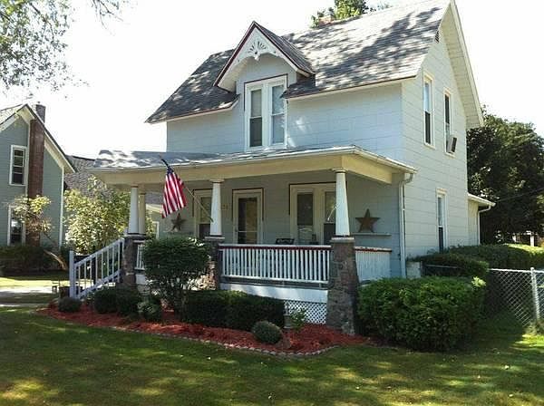 Enjoyed a tree-lined street with sidewalks and a fenced yard while sitting on your patio or your covered front porch. 3 bedrooms and 1 bath home with garage and a first floor laundry room and kitchen with granite countertops. Full Michigan cellar.