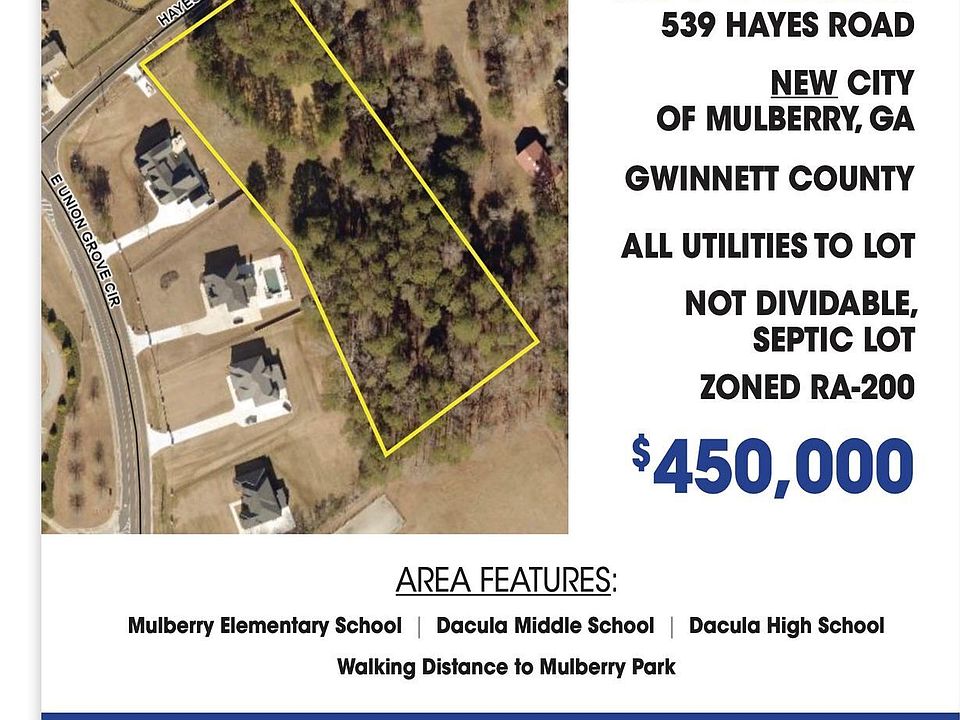 Beautiful Estate Lot in the new City of Mulberry in Gwinnett County, GA. Private, Partially wooded and has a pond on the property. Walkable to Mulberry Park and Mulberry Elementary. Zoned RA-200.