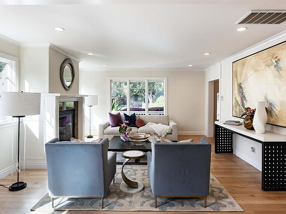 Stylish living awaits in this contemporary home, tucked away on a peaceful cul-de-sac and offering over 2,300 square feet of thoughtfully designed space. Refinished hardwood floors, crisp millwork, and abundant natural light create an inviting atmosphere, with an open living and dining area perfect for entertaining. The home features two fireplaces, a chefs kitchen equipped with Bosch and Thermador appliances, and a walk-out family room that connects seamlessly to the backyard for effortless indoor-outdoor living. Four spacious bedrooms, including a primary suite with a private balcony and spa-like bathroom, are arranged across two levels. Additional highlights include air conditioning and a 2-car garage. Enjoy the convenience of nearby parks, shopping, and dining at The Village at San Antonio Center, along with easy access to Caltrain, US-101, and top-rated schools like Briones Elementary, Fletcher Middle, and Gunn High (buyer to verify eligibility).