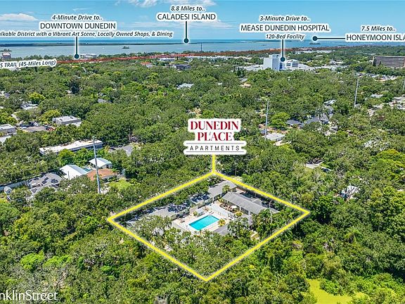 This 10-unit multifamily property is ideally situated just minutes from the heart of Downtown Dunedin, offering an attractive unit mix with spacious one- and two-bedroom layouts averaging 870 square feet. All two-bedroom units feature a versatile den, perfect for a home office or guest space, while every unit is equipped with its own Washer/Dryer and a ONE-CAR GARAGE. The property presents a value-add opportunity with more than $105/unit in monthly rental upside, supported by recent capital improvements including select upgrades to HVAC systems, water heaters, plumbing, and other enhancements. Located in a quiet residential neighborhood just 0.9 miles from Downtown Dunedin’s vibrant shops, restaurants, and waterfront charm, the property also provides convenient access to major employers like BayCare Health System/Mease Dunedin Hospital (0.7 miles) and TD Ballpark, home of the Toronto Blue Jays Spring Training (0.7 miles). Outdoor recreation is close by with the Pinellas Trail just 2.2 miles away, offering 45 miles of paved paths connecting St. Petersburg to Tarpon Springs. Residents also enjoy easy access to world-class beaches, including Clearwater Beach (6.9 miles), Honeymoon Island State Park (7.5 miles), and Caladesi Island via a short ferry ride (8.8 miles).