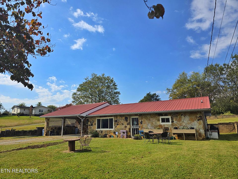 Welcome to 539 Offutt Road in Clinton, TN - a well-kept stone home on just over half an acre with peaceful country views all around. This comfortable 2-bed, 1-bath home offers easy one-level living with a spacious living room, eat-in kitchen, and plenty of natural light. The kitchen features a brand-new dishwasher, and the refrigerator stays! Recent upgrades include high-efficiency insulated vinyl windows for added comfort and energy savings. Outside, you'll find a covered two-car carport plus a detached two-car garage which is perfect for storage, hobbies, or a workshop. The metal roof, low-maintenance exterior, and quiet setting make this property ideal for anyone looking for simple living with space to breathe, all just minutes from Clinton, Oak Ridge, and Knoxville.