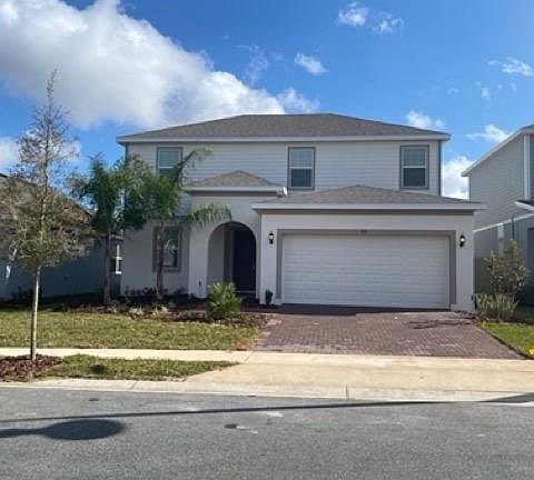 (pictures of furnished model included) 4 bedroom 3 bathroom, 2 story, 2400 plus sq ft home with a loft upstairs. Grey carpet, and tile that looks like wood throughout. One bedroom and bathroom downstairs. Three bedrooms and a loft upstairs. Patio and large yard. laundry room downstairs. kitchen with new appliances-stove, refrigerator, double sinks, microwave, garbage disposal, kitchen island overlooking family room. sprinkler system for the front and back yard. 2 car garage. Brick pavers in the driveway. Backyard is unfenced. This property is in a 24-hour guard gated community, with amenities like a heated pool, hot tub, volleyball court, dog park, children's playground, walking trail, gazebo, clubhouse with 24-hour access gym, reading room/library with computer and free internet, free areas for events. Grassy areas for kids to play. All ages and cultures in the neighborhood. Area to park large vehicles. Public and private schools are close. Busing to public schools. New shopping center close by with Publix grocery store. NO SUBLEASING, UNFURNISHED!! NO SHORT-TERM RENTALS, AIR BNB/VRBO TYPE LEASES PER HOA GUIDELINES. NO ANIMALS