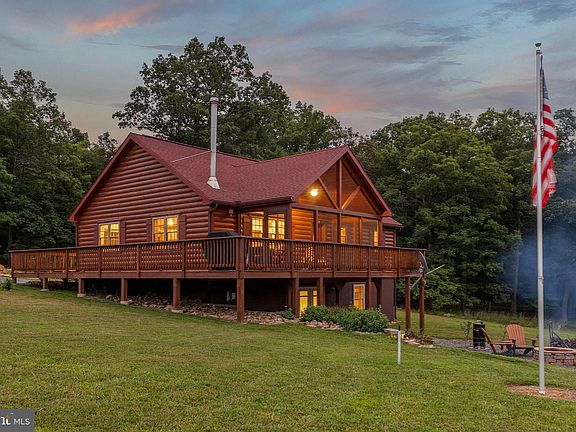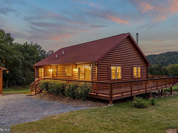 MOTIVATED SELLER! Tucked inside the gated, amenity-rich community of The Crossings at the Great Cacapon, this 2022 Cozy Cabins retreat blends modern comfort with classic Americana charm. From the moment you arrive, sweeping 180-degree mountain views and the river, just a stone’s throw away, set the stage for a lifestyle rooted in peace & connection with nature. Crafted with log siding, pine ceilings & walls, and rustic finishes throughout, the home radiates cabin warmth, while offering the peace of mind of newer construction. Built on a Superior Walls foundation—renowned for top-notch insulation and efficiency—this property also boasts a wraparound deck, stone firepit, detached garage for hobbies, and young saplings ready to grow into the landscape. And with its proud flagpole, you can let freedom ring as you fly your flag against the backdrop of panoramic mountain views. The versatile primary en-suite is located on the lower level, ideal as a private retreat, guest suite, or multi-generational space. Two fireplaces—one wood-burning and one propane—anchor the main living areas, while a screened porch invites year-round enjoyment of the views. Nearly three acres of cleared, flat land provide space to garden, play, or simply breathe in the mountain air. A portable generator conveys ready to plug in when needed, and furniture is negotiable, offering a true turn-key opportunity. Just 2.5 hours from Washington, D.C., The Crossings is a close-knit community with private river access, quiet roads, and shared spaces perfect for long walks and morning bike rides, fishing, swimming, and kayaking. Short-term rentals are not permitted, preserving the neighborhood’s quiet appeal and timeless character. This is the ultimate mountain cabin experience—move-in ready, river-close, and waiting for your story to begin.