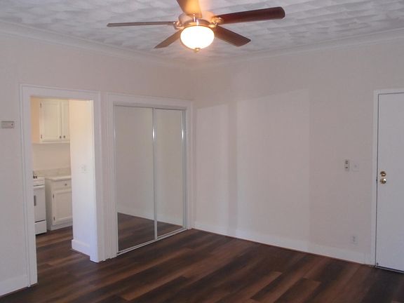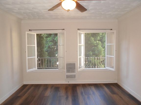 The Sutton studio apartments with secure access. Scored 97% walk-able area with a short walk to Larchmont. One block to Metro station. Beautiful lobby with fountain. This studio apartment has new flooring. Charming European feeling with French windows and a lovely view. Spacious main room with 9' ceiling clearance, ceiling fan, and gas heater. Separate kitchen with white cabinets, enamel sink, gas stove, refrigerator, and dining area. Bathroom with rose marble, new fixtures, and built-in storage drawers. Walk-in closet with built-in vanity and chest of drawers. Laundry room in building with back yard patio for tenants. Shown by appointment only Please call on-site manager Robert. Tenant pays electric and cable bills, plus Conservice share of building expenses.