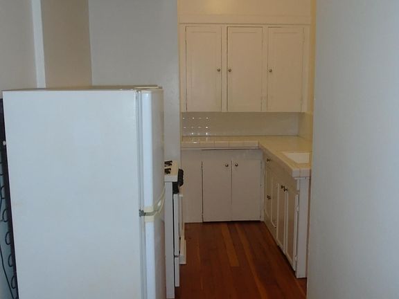 The Sutton with secure access. Scored 97% walkable area with a short walk to Larchmont. One block to Metro station. Central location with Metro and parking structures close by. Short walk to Larchmont. Nicely landscaped front with back yard patio for the building. Security building access. Beautiful lobby with fountain. Laundry facilities in the building. Top floor unit. Large main room with hardwood floors and an additional mirrored closet, ceiling fan, and AC. Separate kitchen with refrigerator, gas stove and heat included in rent. Pantry closet, Ceiling fan over the dining area. Closet with built-in vanity in the hallway. The bathroom has rose marble flooring and new fixtures. Owner pays, hot water, water, trash, sewer, and gas. Tenant pays Electric and cable.
