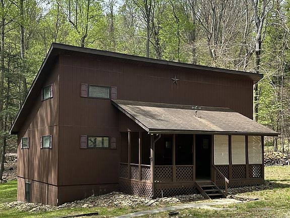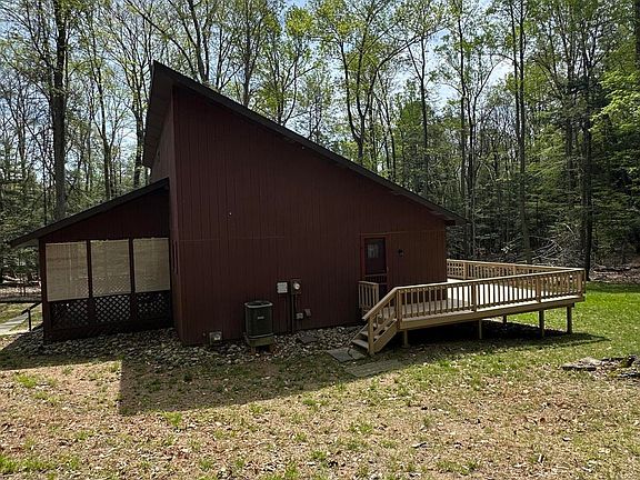 Cozy and private 3 Bedroom nestled in a gated community. Walking distance to the pool, community park, basketball court and clubhouse. Enjoy nature with walking trails nearby. Abundant wildlife throughout the community and even in your own back yard. Entertain on the large back deck, have coffee in the morning on the front porch or build a fire in the fire ring. Plenty of hardwood still on site. This would be a great second home or permanent residence. Included in this sale is a second lot to the right of the house. The HOA fees of $910.13 are for both lots. Call Listing Agent for gate access.