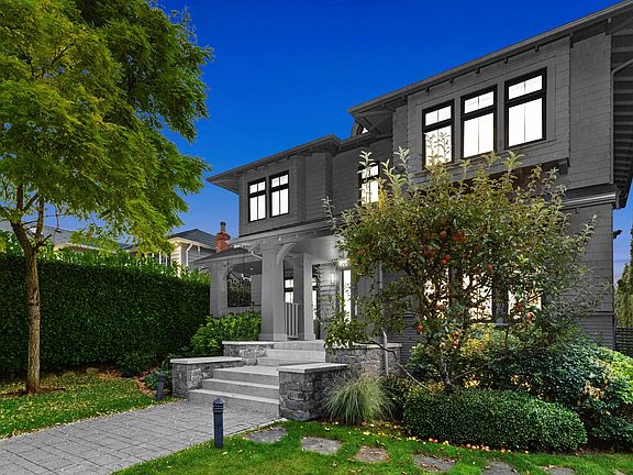 Rarely available Nexus-built home on quiet tree-lined street. Grey-on-grey craftsman exterior, modern interior with Sub-Zero/Wolf kitchen, dining, family & living rooms with fireplaces. Upstairs: 4 bedrooms incl. luxury primary suite with patio, 3-sided fireplace, walk-in closet & spa ensuite. Basement: rec room, wine room, gym & 2 bedrooms. Features 7.1 surround sound, LED intercom, cameras, HRV, radiant heat & A/C. School: Kerrisdale Elementary, Point Grey Secondary.