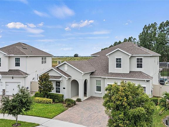 Rarely available Arlington w/ Bonus by Dream Finders Homes, set on one of the largest and most private lots in Wincey Groves — approximately 0.32 acre with no rear neighbors and a west-facing backyard that captures spectacular sunsets. Built in 2021 and meticulously upgraded, this 6 bed, 4 bath residence offers over 4,000 sq ft of living space and over 5,000 sq ft total under the roof, including a screen-enclosed saltwater pool and spa with ozone system, rock landscaping, and covered lanai for year-round outdoor living. Per the builder, no future development is currently planned behind the property, enhancing the rare sense of privacy. The first floor showcases 10-foot ceilings, ceramic tile flooring, and an open layout connecting the kitchen, dining, and family areas. A flex bedroom with double doors and a closet opens to the family room—ideal for guests or a private home office. The gourmet kitchen features 42-inch upper cabinets with crown molding, quartz counters, tile backsplash, oversized island, double ovens, gas range, and custom pantry. The spacious family room offers a built-in entertainment center and triple sliding doors to the lanai, blurring the line between indoor and outdoor living. The primary suite features dual walk-in closets (one with a safe and organizers), dual vanities, freestanding soaking tub, and frameless glass shower. Three additional main-level bedrooms include custom closets and nearby full baths. Upstairs, a bonus room with wet bar and space for a wine fridge anchors two secondary bedrooms and a fourth bath—perfect for multi-gen living or entertaining. Smart home features include smart thermostats, Arlo doorbell, automated blinds, smart switches, and Hunter Douglas window treatments. The three-car garage adds epoxy-sealed flooring, slatwall organization, ceiling storage racks, and a Tesla charger. Additional upgrades include custom lighting, closet built-ins, and energy-efficient construction throughout. Wincey Groves offers a community playground, sidewalks, and easy access to shopping, dining, and recreation in the Hamlin district. This home combines space, privacy, and convenience in one of Winter Garden’s most desirable locations. A rare opportunity to own a fully upgraded, move-in-ready pool home with sunset views and premium lot position in the heart of Hamlin.