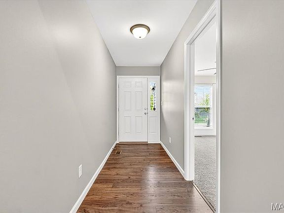 MOVE-IN READY! This beautiful 3-bedroom, 3-full-bath ranch-style villa is perfectly positioned on a walk-out lot and showcases a fantastic finished lower level. The open floor plan features vaulted ceilings , two panel doors, and brand-new carpet in the living room, which seamlessly connects to the stunning eat-in kitchen featuring a breakfast bar, 42” umber cabinets, Argento Romano laminate countertops, upgraded Bourbon Bridge Toasted Chestnut premium wood laminate flooring, a stainless refrigerator, and a flat-top electric range—all leading to a spacious deck, ideal for relaxing. The main-floor primary suite highlights large windows, plush shimmer carpet, and a luxurious bath with dual sinks, a shower, and generous closet space. The impressive finished walk-out lower level expands your living space with a large rec room, bedroom, full bath, wet bar, laminate flooring, tons of storage space and direct access to the patio. Convenient main-floor laundry and low-maintenance living make this villa a truly exceptional find!