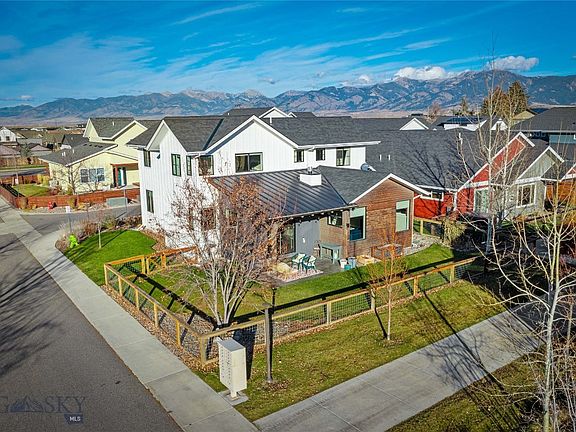 Beautifully maintained 4-bedroom home in The Lakes at Valley West—one of Bozeman’s most sought-after neighborhoods. Situated on a desirable corner lot, this property offers direct access to the neighborhood trail system and is just a half block from the community pond and park. The main level features an open, bright floor plan ideal for everyday living and entertaining. The upgraded kitchen includes soft sage cabinetry, a brand-new gas range, a beverage/wine fridge, floating shelves, stainless steel appliances, subway tile backsplash, under cabinet lighting and a generous pantry. A striking live-edge island with bar seating anchors the space. The adjacent living and dining area is spacious and is centered around a modern three-sided gas fireplace that adds both ambiance and architectural interest. Also on the main floor is a versatile bedroom that has been transformed into a moody, stylish office, offering flexibility for work or guests. The main-level half bath is a standout with fanciful designer wallpaper, custom paint, and upgraded fixtures, creating a bold and memorable powder room. The mud room off the 2-car garage is highly functional, featuring a utility sink, built-in cubbies for coats and gear, and a secondary entrance that leads directly to the fenced backyard, providing convenient access after gardening or outdoor activities. Upstairs, the primary suite includes a spacious walk-in closet and en-suite bathroom with a custom tile walk-in shower. Two additional bedrooms share a full hall bath, and an extra room—currently used as a nursery—offers excellent flex space that could be used for an office or hobbies. The backyard is beautifully landscaped with a variety of flowering plants, perennials, and raised garden beds equipped with drip irrigation and underground sprinklers. A covered back patio extends the living space and is perfect for enjoying warm summer evenings. Central air conditioning is a relatively new amenity to this home, added in 2023. This home offers thoughtful upgrades, modern finishes, and an exceptional location in one of Bozeman’s premier communities.