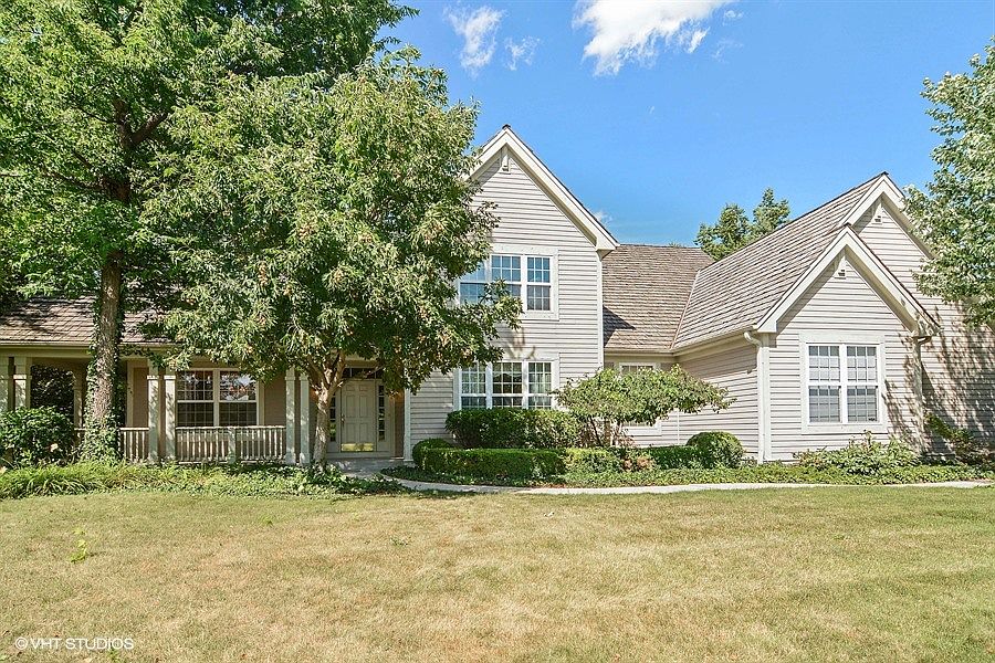 Situated on the largest lot in the neighborhood, and backing to conservancy, this original builder's model in Maintenance Free Promontory Pointe of Long Grove! This flowing open floor plan boasts soaring ceilings and freshly refinished maple hardwood floors. Lovely kitchen is open to the Great Room, and has maple cabinets, stainless appliances, granite counters, breakfast bar and table space. French doors lead to a screen porch with pretty views and serenity. A door from the porch also leads to the great room, featuring a fireplace with floor to ceiling limestone surround, with magnificent windows and tons of natural light. Luxury 1st floor master suite is down the hall and has two walk-in closets with built-ins, and a spa bath with dual vanities, separate shower, soaking tub, private water closet and linen closet. The library/nursery is adjacent. The expansive laundry room is great for crafts, projects, or even an additional office space. The second floor of this home has three spacious bedrooms, one of which is set up as an office with built-ins (no closet), and two additional with a Jack and Jill bath. The basement is expansive with additional open crawl space. It is spacious and clean, and ready for a finishing touch. And finally, the beautiful yard is large, backing to conservancy. The driveway was just replaced last month! This home is in a great location with close proximity to Stevenson High School, major highways, train stations, and shopping. Not to be missed, this home is move-in ready.