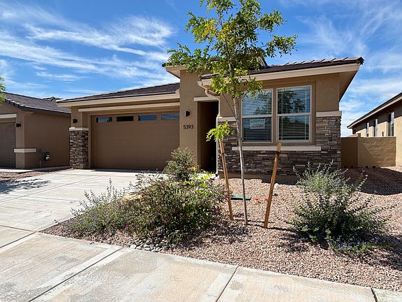 Welcome to this stunning Sapphire home, ready for quick move-in! Included features: a covered entry; a spacious great room with added windows and center-meet doors leading onto a covered patio; a dining nook; a well-appointed kitchen boasting white 42'' cabinets, a center island and a generous pantry; a convenient laundry; a lavish primary suite showcasing extra windows, dual walk-in closets and a private bath with double sinks; three secondary bedrooms and two additional bathrooms. This home also offers quartz countertops, luxury vinyl plank flooring and stone exterior accents. Tour today!