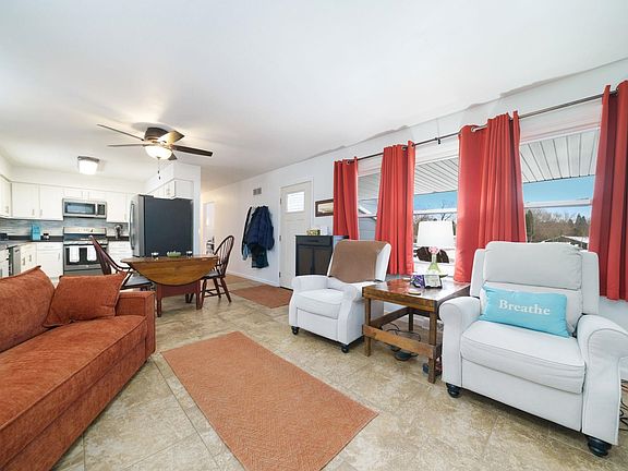 This 1.5-story home offers generous space, thoughtful updates, and flexible living areas. The main level features a welcoming living room, an updated kitchen with stainless steel appliances, and a comfortable family room with a gas log fireplace. Three bedrooms and a full bathroom are located on the main floor, including a spacious primary suite addition. The original first floor was designed with accessibility in mind, offering wide 48” hallways and 36” doorways. Upstairs, you’ll find two additional bedrooms and another full bathroom, ideal for guests or added privacy. A large basement provides excellent potential for future finished living space. The home includes a 2-car attached garage. Recent improvements include a roof completed in 2019, kitchen renovation about eight years ago, updated windows (half approx. four years old, half approx. six years old), and updated mechanicals. Additional features include two sump pits, a whole-house generator, iron filter and water softener, a newer well tank, and updated chimney flashing with some decking replaced at the time of the roof. SunStrong solar panels are in place with an existing power arrangement.