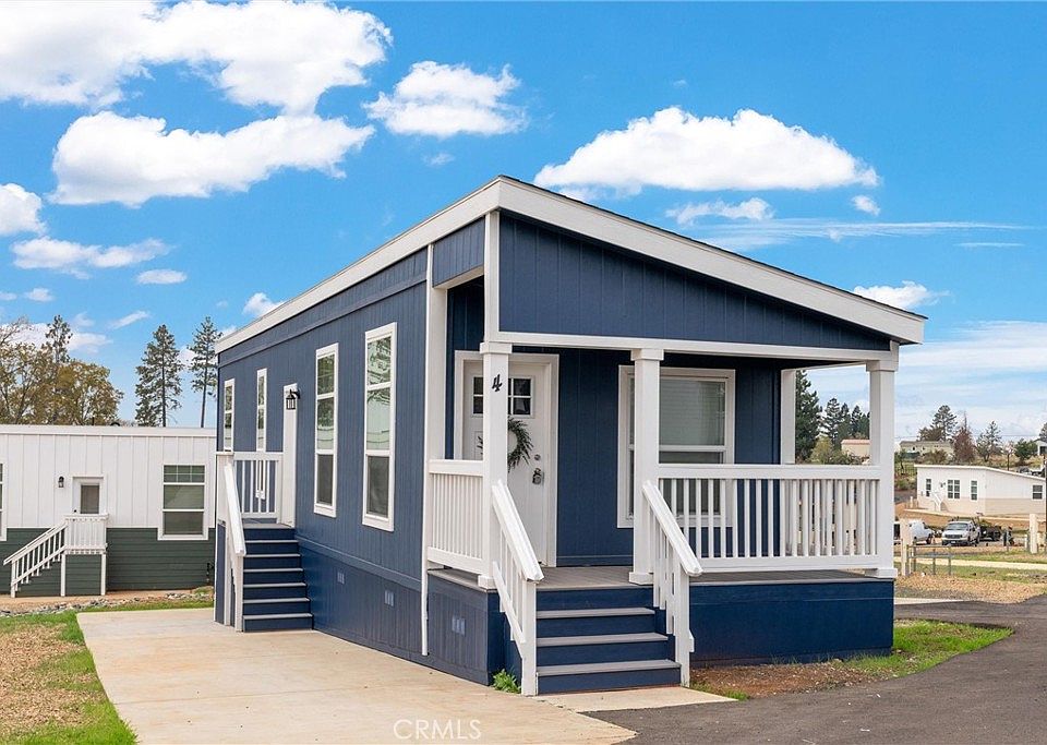Unit 4 is the kind of home that instantly feels inviting. This 2-bedroom, 1-bathroom charmer begins with a covered front porch, your new favorite spot for morning coffee, greeting guests, or simply watching the day unfold. Inside, laminate wood flooring runs throughout the home, giving each room a warm, cohesive feel. The kitchen features stainless steel appliances, including a dishwasher, and offers a clean, modern layout that opens easily into the living space. A dedicated laundry closet with stackable washer/dryer hookups adds convenience without sacrificing room. Both bedrooms offer flexibility for sleep, work, or hobbies, and the full bathroom is centrally located for easy access. Residents of this park enjoy two months of free rent, space rent that includes high-speed internet, and amenities designed for relaxation and connection: a fully fenced dog park with a cleanup station, a horseshoe pit, and a covered picnic/BBQ area perfect for hosting or community events. With its location on Sawmill Road, you’re moments from central Paradise, local schools, and just a quick drive to Chico via the Skyway. Cozy, charming, and move-in ready, Unit 4 offers a lifestyle that’s both simple and deeply enjoyable.