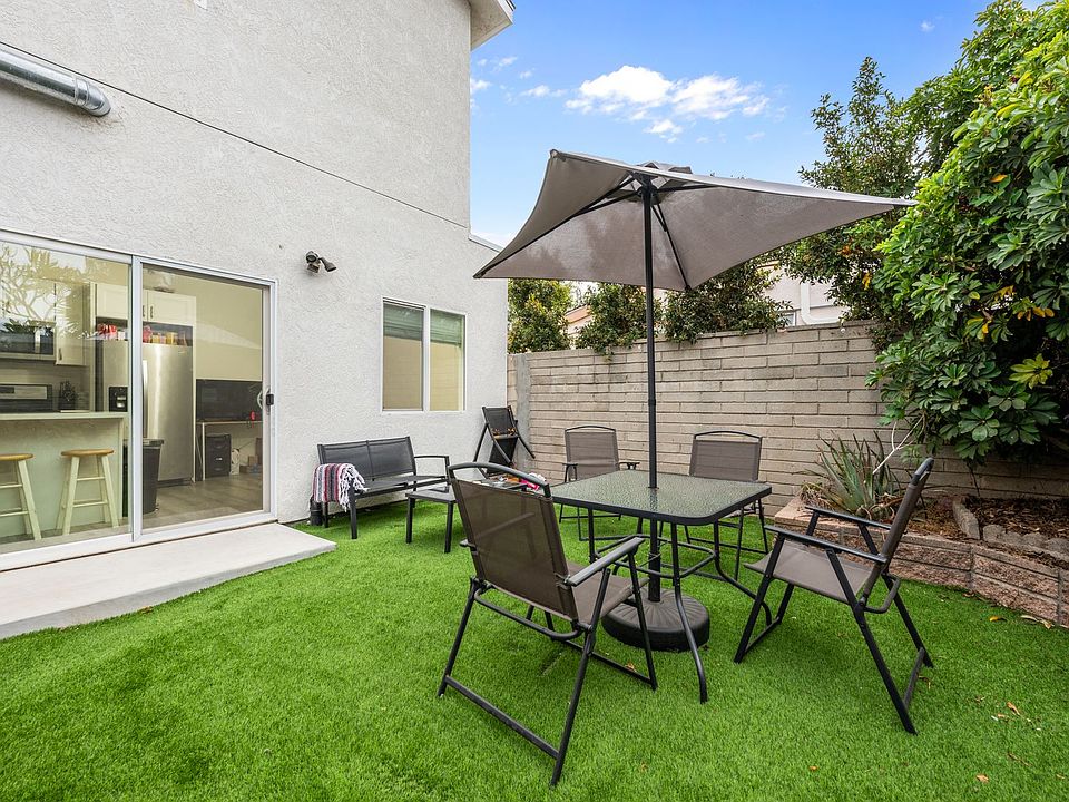 Private turfed backyardIn-unit washer and dryerOpen eat-in kitchen