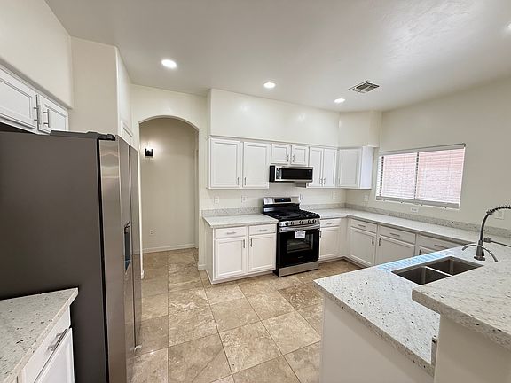 Newly remodeled home offers you a great space to call home with a beautiful kitchen with granite countertops tops as well as custom granite hand made sinks in both bathrooms. The outside provides a stunning view of the Tucson mountains with a spacious patio to enjoy it.