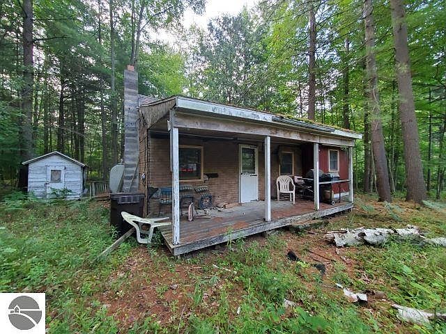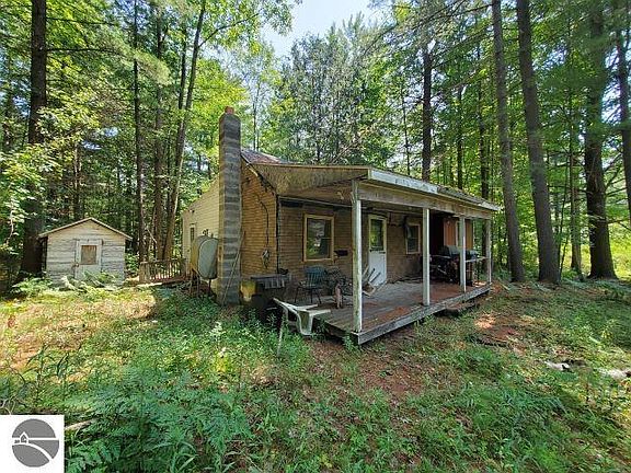 WOODED LOT with septic, well and power. Small cabin of little or no value that is in need of repair. Could be used as your Up North hunt base. Condition of well and septic unknown.