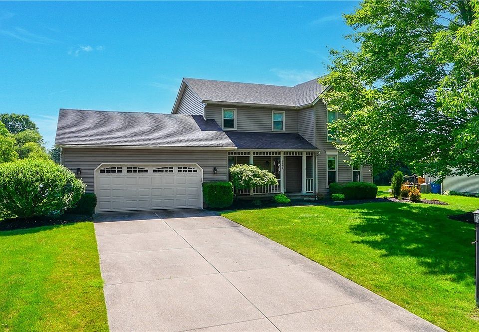 Welcome to this gleaming, sun-filled, and beautifully maintained home in the highly sought-after Towbridge neighborhood. A charming front porch invites you into the hardwood foyer, which opens to both the formal living and dining rooms. Glass-paneled French doors create an open yet defined flow between these elegant spaces. The inviting family room features a cozy gas fireplace and bay windows, filling the space with warmth and natural light. The chef’s dream kitchen boasts hardwood floors, quartz countertops, stainless-steel appliances, and abundant storage—perfect for both everyday meals and entertainment. Conveniently tucked behind the doors in the half bath, you'll find the first-floor laundry. Upstairs, the serene master suite offers a spacious en-suite bath with a garden tub, walk-in shower, and generous walk-in closet. Two additional large bedrooms and a full bath complete the second floor. Step outside to enjoy the expansive deck with tranquil pond views, creating the perfect backdrop for relaxation. With a two-car garage, easy access to bike and hiking trails, and proximity to a wonderful park system, this home provides everything a discerning buyer seeks in a quality-built home.
