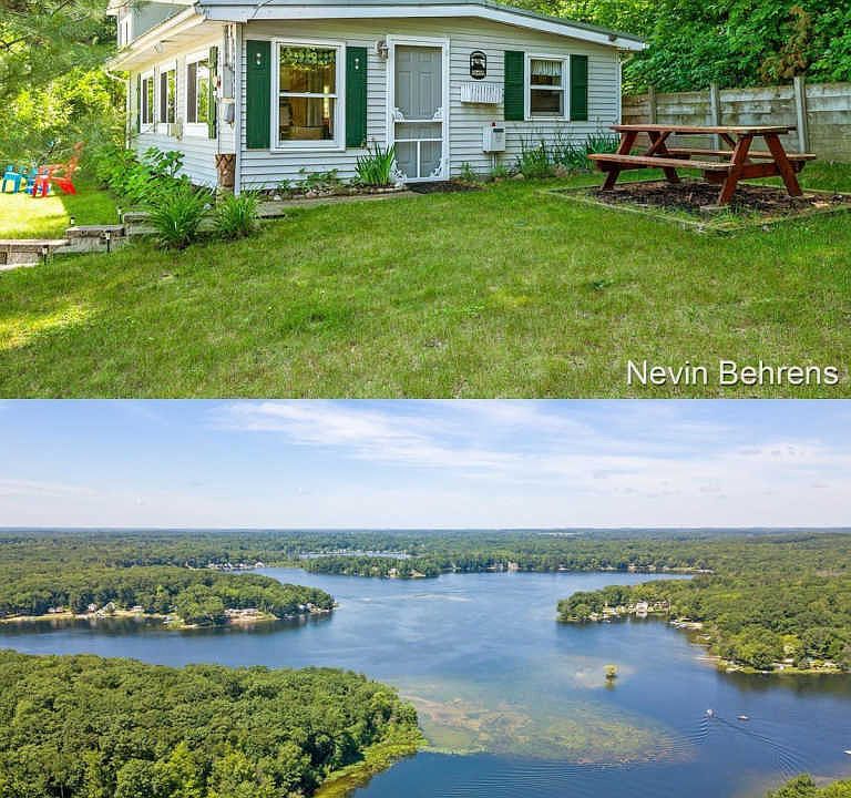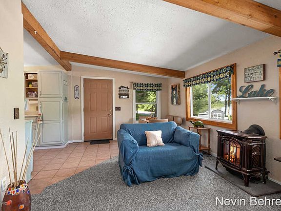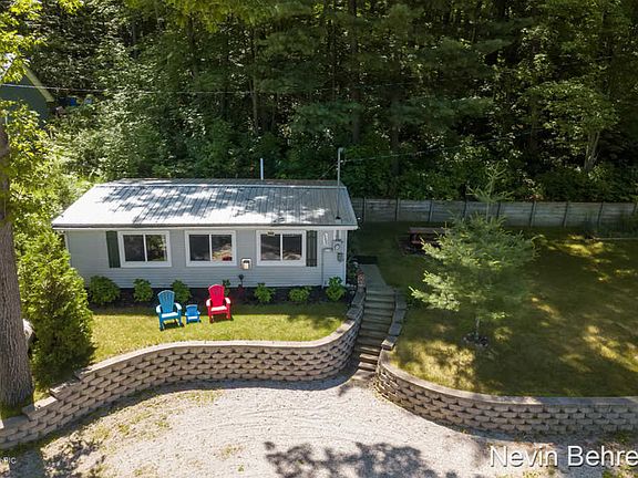 Cute cottage on chain of 4 lakes.Just the right size for easy upkeep and no driving way up north! 107 feet of frontage on the channel of 318-acre, all-sports Pickerel Lake which is connected to Kimball, Emerald, and Sylvan lakes. Beautiful spot with 2 nice-sized lots. Lovely view from the windows! *City sewer *Open concept kitchen/dining/living *Pine 6-panel doors *Ceramic tile *Napoleon direct vent gas log fireplace *Large like-new storage shed *Nice parking spots *Garage can be built per thetownship *Dock that stays in the water year-round *Amish-built steel roof *Thermal pane windows *Muskegon River runs through town with canoe and tube rentals * Golf courses in the area * Can also be used as a short-term rental per the township $$