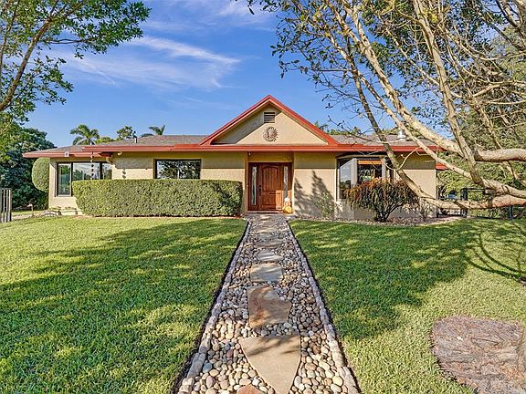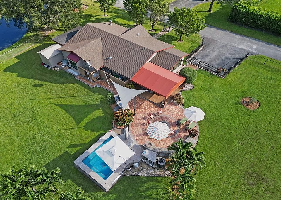 Prime Davie land for sale 1.5 acres with NO HOA and zoned Agriculture, featuring a private pond and gated driveway. With ample room to expand or add a second floor, the property offers limitless possibilities. Recent upgrades 2024 include a brand-new roof, 48-foot RV storage pole barn, and enhanced plumbing in the luxurious primary bath with a jet Jacuzzi tub. Enjoy year-round relaxation in the heated and cooled salt water pool, installed in 2020, and the new outdoor shower with hot water. The 2020 kitchen remodel boasts custom cabinetry, quartzite countertops, and new tile floors. AC and hot water heater are both recently upgraded. Security system with 6 exterior cameras as well as all impact windows and doors. Serenity, space, and style—this home is a must-see! 42 Foot RV included!