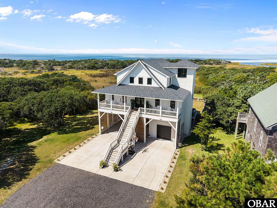 Don’t miss this exceptional custom-built Soundfront home, a true showcase of craftsmanship, design, and detail. Set on nearly 3.5 acres with breathtaking Pamlico Sound views, this newly constructed residence combines timeless coastal architecture with every modern comfort. Featuring 4 bedrooms, 4.5 baths, and the option for two additional bedrooms plus a guest house, this home is as versatile as it is beautiful. The open-concept living area showcases hickory hardwoods, beamed ceilings, and a gas fireplace accented by custom shiplap and trim. The chef’s kitchen impresses with quartz countertops, GE Monogram appliances, a full wood-panel refrigerator, and a butler’s pantry ideal for entertaining. The primary suite offers dual walk-in closets, a private covered deck overlooking the Sound, and a spa-inspired bath with steam shower and soaking tub. Designed for year-round enjoyment, this property includes a resort-style pool, expansive patios and porches, an outdoor shower and fish-cleaning station, a barrel sauna, and a handcrafted cold plunge. Upgraded insulation, Pella Reserve windows, and thoughtful touches throughout ensure comfort and efficiency. A state-of-the-art fitness room, landscaped grounds, and walkable beach access complete this coastal masterpiece. Too many upgrades to list, please view attached documents for all upgrades. Offered fully furnished—your Hatteras Island retreat is ready to enjoy.