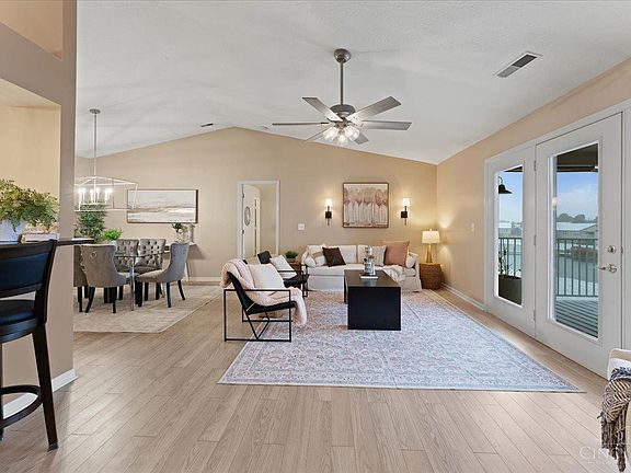 WOW- WHAT A VIEW! Prepare Yourself to Be Dazzled by This 3 Bedroom, 2 Bath Home Located in the Highly Desirable Neighborhood, Harbour Watch! From the Moment You Step Inside, You Will Be Amazed by the Breathtaking, Lake View! Open, Inviting Living Room w/Vaulted Ceiling, Toasty Gas Fireplace w/Stone Accent Wall, LVP Flooring & a Walk Out to the Covered Balcony- THE Perfect Spot to Relax! Host the Holidays in Your New Home While Baking Goodies in the Kitchen! Updated Kitchen Boasts Granite Countertops, Tile Flooring, Tile Backsplash, Under Cabinet Lighting, Double Pantries & Stainless Steel Appliances. Pull up a Chair to the Counter Bar for a Quick Bite or Your Morning Coffee! Primary Bedroom Features Vaulted Ceiling, Spacious Walk in Closet for the Clothing Fashionista & Adjoining Bathroom. Primary Bathroom Offers Double Vanity, Soaking Garden Tub, Tile Flooring & Tile Shower. Parking is a Breeze w/Oversized Attached 1 Car Garage & Detached 1 Car Garage, Driveway & Ample Guest Parking.