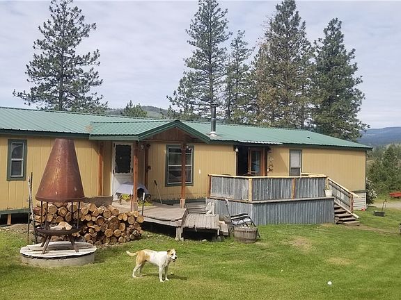 PRICE REDUCED! PRIVACY SURROUNDS-4 bd/1.75 ba MH on 4 ac west of Okanogan. Spacious LR, fam rm w/slider to deck, din rm w/French drs, kit w/granite island, appl's. Mstr bd/ba suite w/walk-in clst, full bath w/garden tub w/unique corrugated metal surround. Util rm with W/D, office, lam flring, new trim/some paint & more. Covered frnt & back decks, hot tub, landscaped yard. Barn, chicken coop, fenced acreage. 2-car shop/garage w/wd stove, garden, trees, private well. $174,900 H-2743/MLS1472380