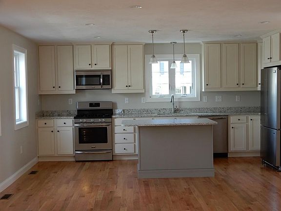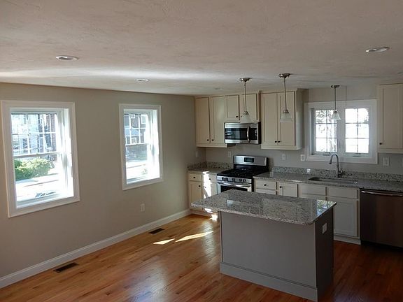 New construction! Beautiful open-concept living in this customized, three bedroom, two and a half bath townhouse. This new construction was thoughtfully designed with attention to detail. Custom kitchen cabinets, granite counters, stainless steel appliances, including five-burner stove, island for seating, and storage pantry all open to a large eating/living space perfect for entertaining. Access the private back patio and newly-landscaped back yard through the living room sliders. With custom finishes and gleaming hardwoods throughout, the many windows allow for great natural light. The large master suite includes a walk-in closet, with the laundry room conveniently placed on the second floor. Custom cabinetry and finishes in all bathrooms. Energy and cost efficient heating and cooling. Close to schools, playgrounds, routes 93 & 95, bus routes, downtown Stoneham's shops, restaurants, and theatre. Enjoy the proximity to walking trails and boating on beautiful Spot Pond.