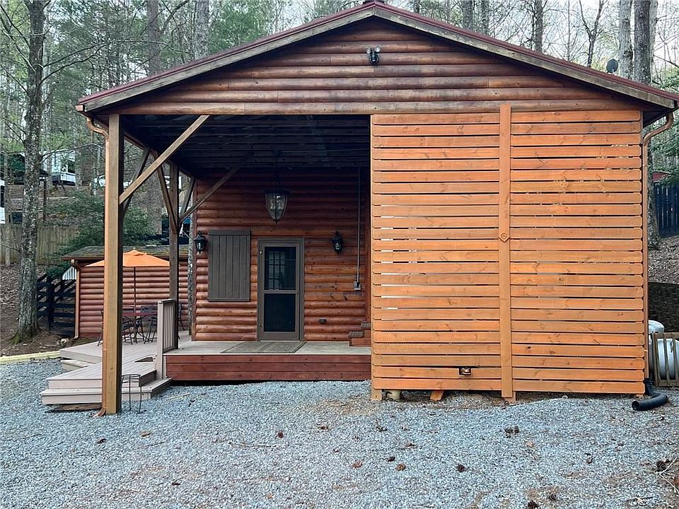 Drive into this gated resort to your home/rv/cabin in Coosawattee River Resort. Move right in. Large roof over and wood wrapping your 5th wheeler/with big addition grandfathered in. Wonderful space. Come relax. Feed the deer. Float down the river. What a get away or full time living. Perfect for air B & B, rental or pure family enjoyment.Lots of decking and privacy. Minutes from downtown Ellijay, shopping, the multiple apple houses, and wineries . Large stone patio, fire pit and a grill awaiting you. Large additional storage building. All furniture stays so turn key.
