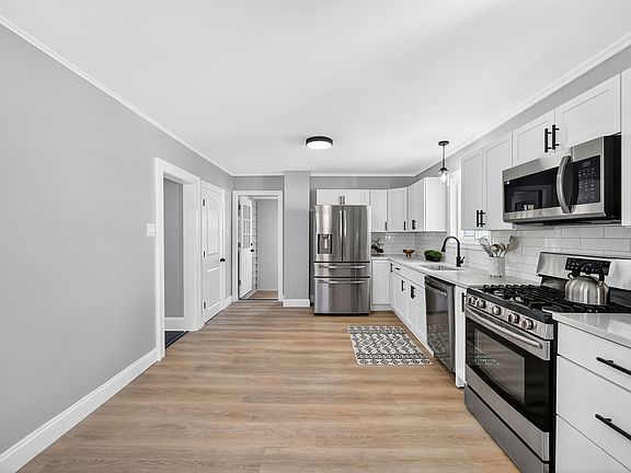 Welcome to This beautiful updated cape with over 2100 sq ft. Once you come inside you will be met with dark walnut hardwood floors throughout & a stone fireplace. This home has 4 spacious bedrooms including 2 on the first level & 2 on the second level. Each level has a full bathroom with modern tile work. The kitchen has New cabinets with Calcutta quartz countertops, stainless steel appliances. New windows throughout & roof. Large basement for storage. This home is very spacious & accommodating. Come see this beauty & make it yours just in time for the holidays.