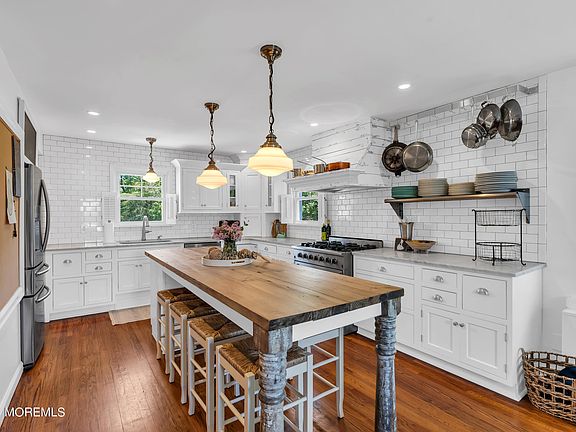 Nestled in the heart of Manasquan, lies this unique home. It is situated in close proximity to the restaurants and shops of downtown Manasquan, the train for commuting, and beautiful beaches for relaxing. This custom home has been beautifully renovated. As you enter the foyer, you are greeted with a large inviting kitchen complete with stainless steel appliances, honed carrara marble counters, a large island and comfortable sitting area for informal gatherings. The spacious living room is warmed by a cozy fireplace for cool nights, a wet bar for entertaining and a view of the beautifully landscaped backyard oasis with a concrete paver patio. The primary bedroom includes a walk in closet and exquisitly detailed en suite.This home also includes family room/bedroom, two additional spacious bedrooms, laundry room, two half baths and an additional full bath. This home is ready for you to create wonderful memories of life at the Jersey Shore.