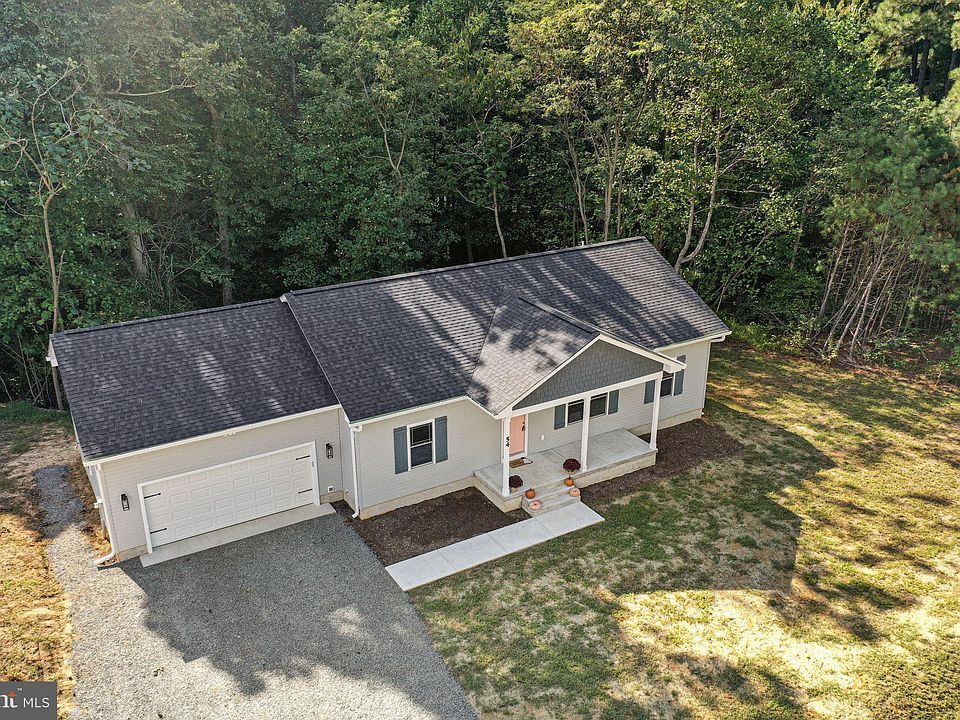 This home is much more than your typical spec home! This beautiful ranch-style home offers a modern and stylish design with an open floor plan and LVP flooring throughout. The great room connects beautifully to a stunning kitchen, which features white shaker cabinets, quartz countertops, an eye-catching black backsplash, stainless steel appliances, a large island, and a barn door concealing the laundry/mudroom. The primary suite includes a walk-in closet and a spa-like bathroom with a double vanity, soaking tub, and a striking black-and-white tiled walk-in shower that serves as the focal point. Two additional bedrooms and a full bath are located on the opposite side of the home, providing privacy and comfort for family or guests. Additional features include a 2-car attached garage with mudroom entrance, a covered front porch with sidewalk, a 12x20 back deck with sliding door access, and a durable 50-year CertainTeed shingle roof. The home is positioned on a generous 1.56-acre corner lot. Located in the desirable Stratford Harbour community, residents enjoy access to amenities including a pool, tennis and basketball courts, playground, soccer field, clubhouse, and picnic pavilion. Boating enthusiasts have access to Lake Independence and the Potomac River, and beach lovers can visit Shark Tooth Beach for fossil hunting, swimming, and sunbathing. This home is truly a must-see! Professional photos coming soon!