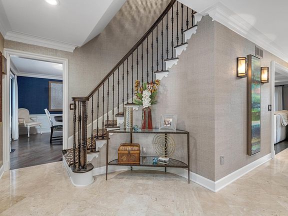 Welcome to 54 Belle Meade, not just a home but a recently renovated sanctuary looking for it's new family. With 5 bedrooms, 4 and a half bathrooms, custom Milennium Kitchen and bathrooms, this tastefully designed home is key turn ready and waiting for you. On the top floor you'll find the primary suite with a large bathroom area with built in vanity, and multiple closets. A secondary bedroom also has a built in vanity with light up mirror. A third bedroom has soaring ceiling and beautiful chandelier. Down the staircase to the first floor you will find your office, guest bathroom, piano room with built in bookcases and a new bay window. From there you move across the main entry hall into the tv room that has a large built-in tv all with more bookshelves and a wet bar for entertaining. The tv room leads into the spacious and bright custom Millennium Kitchen. Here you will find high end appliances from Wolf and Subzero. The counters are Cristallo, the cooktop is induction, a double oven, and microwave is integrated into the island, with 4 freezer drawers and a pantry. Look closely and you will see a hidden coffee station with special cabinets that pop-out for storing kitchen and speciality items. There is a hidden cabinet with a tv over the oven as well. Off the kitchen is an oversized laundry room with a service door to the garage and courtyard. The laundry room has multiple closets, a laundry shoot and conveniently located full bathroom. The entrance to the basement is located in the laundry room. Here you will find a second custom kitchen, workout room with floor to ceiling mirrors, another full bathroom, flex room currently used as an art room, second laundry, with ample storage. The basement is a special place for entertaining with the ability to have a mutli-generational family live as well. Nest and C02 detectors have been installed throughout the home, as well as recessed lighting, and a Sonos sound system through the first floor, garage, and patio. In the front courtyard is a basketball net and installed flood light for night time games on the court, in the back an oversized patio for entertaining in you own secluded oasis. Back here you will also find a permanently affixed grill connected to the home's gas line. This stunner is not to be missed.